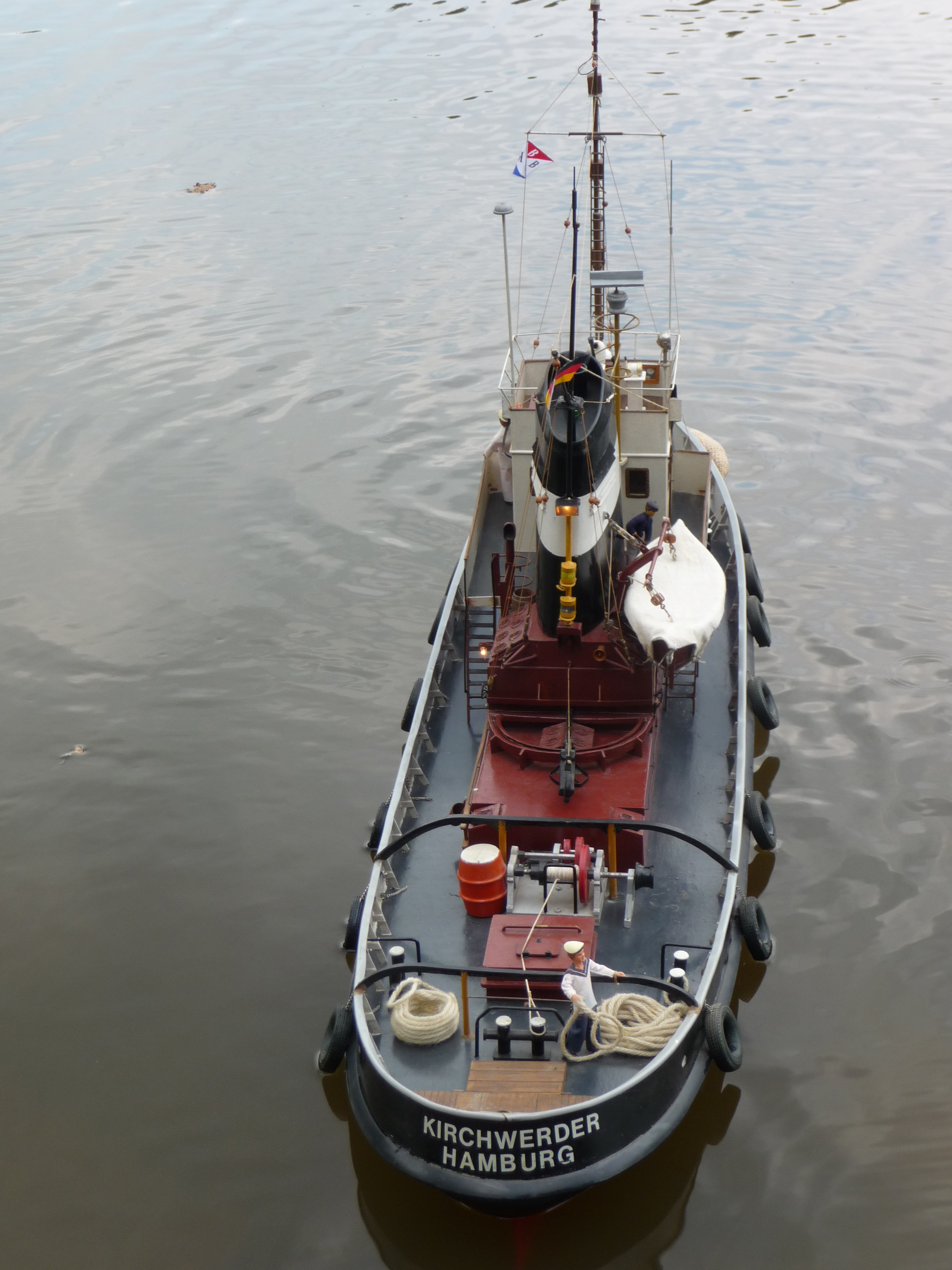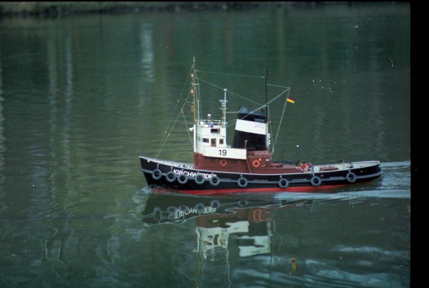 So sah der Schlepper nach dem ersten Bauabschnitt aus. Ich habe noch diese 30 Jahre alten Fotos gefunden. Wie man sieht fehlten noch einige Details wie z.B. das Beiboot.