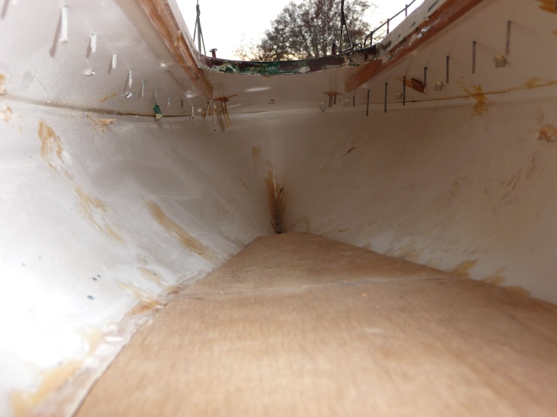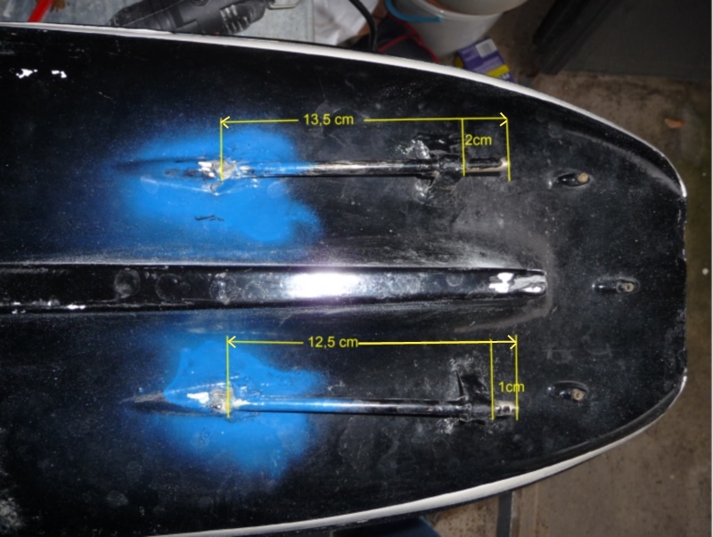Der Rumpf war sehr schlecht verarbeitet worden. Für die Befestigung der Einbauteile wurde eine viel zu große Menge 2K Kleber benutzt.