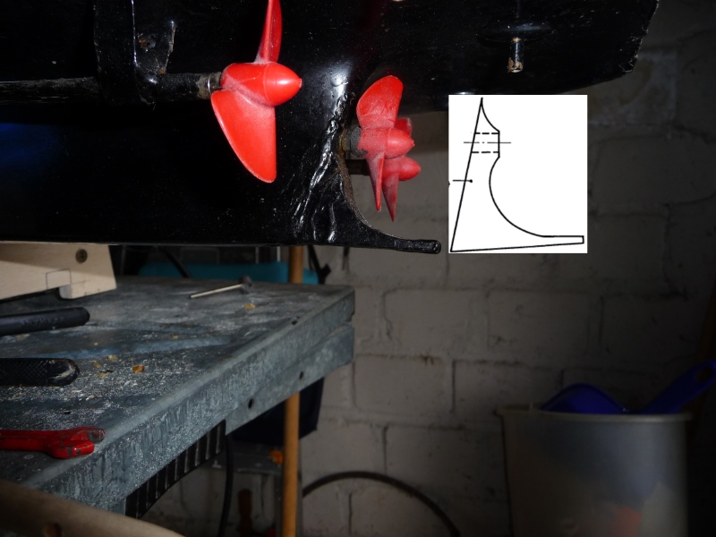 Die nächsten Probleme am Heck waren der Achtersteven und die beiden äußeren Stevenrohre einschließlich Befestigung.